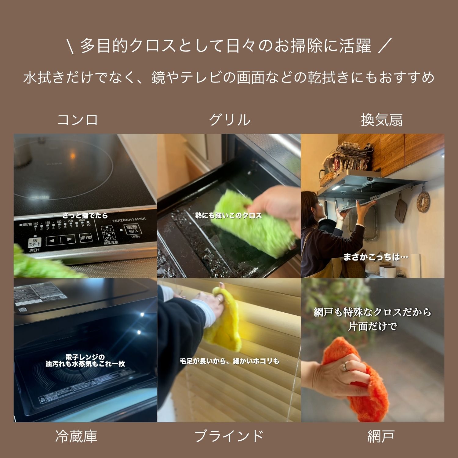 多目的クロスとして日々のお掃除に活躍。キッチンやシンク周り、洗面所、お風呂場などでも重宝します。
