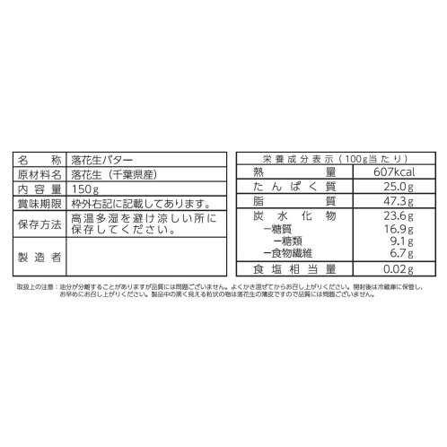 原料に使用するのは評価の高い千葉県産落花生ナカテユタカ種のみ。熟練の職人が焙煎、練り工程などの製法にもこだわり、芳醇な香り、濃厚な旨みを感じる千葉県産ピーナッツバターに仕上げました。シンプルな素材だけで作られたピーナッツバターは、とても濃厚な風味と力強い味わいが際立っています。