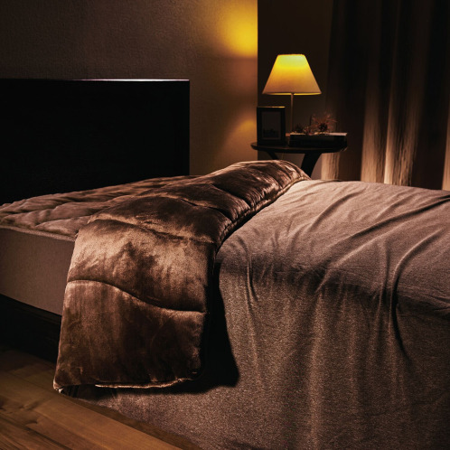 お肌に当たる面と襟部に抜群の肌触りの“プレミアムフランネル”毛布を使用し、保温性・軽さ・かさ高性を併せ持った中わた“ステラカーヴォII”をドッキングさせました。