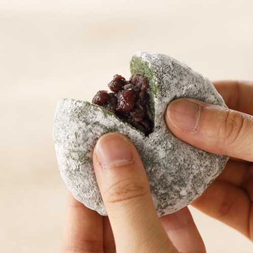 ひと口食べるとよもぎの風味を感じながら大福のもちっとした食感と、絶妙な大納言小豆の粒立ちを楽しめます。