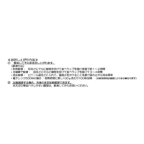 解凍してそのまま召し上がるのはもちろん、料理へのアレンジも多彩な逸品です。
