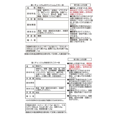 これ一本で本格的! 崔(チェ)さんの ヤンニョムダレ&味噌だれセット