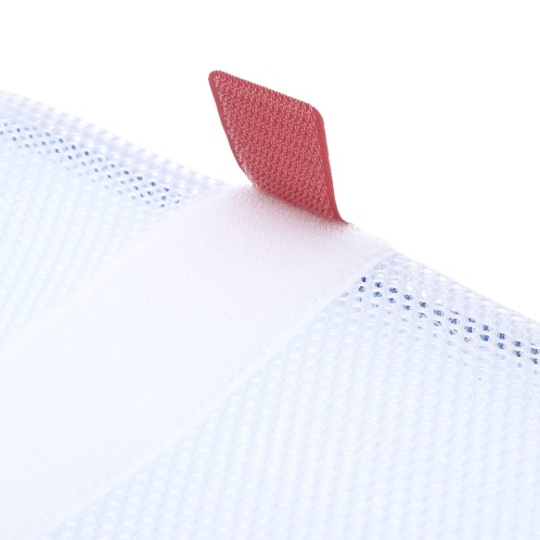 衣類の大きさに応じて、両サイドの閉じる位置を2段階に調整できるのが特徴で、この工夫によりネットと衣類がより密着した環境を作ることができます。そのため、ネットの大きさの範囲内で、薄手の衣類から厚手の衣類、幅の大きい物や小さい物など、幅広い衣類に対応することが可能です。