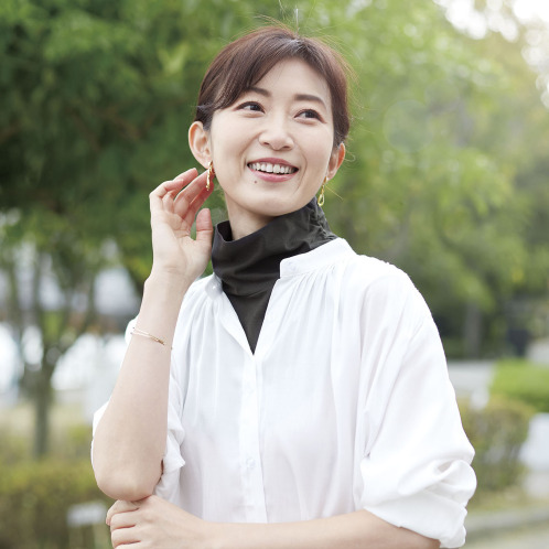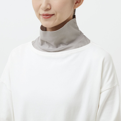真夏は日焼け対策、春秋は寒さ対策として、オールシーズン首もとをしっかりカバーしてくれる、「まるで重ね着 さらっと付けタートル」です。