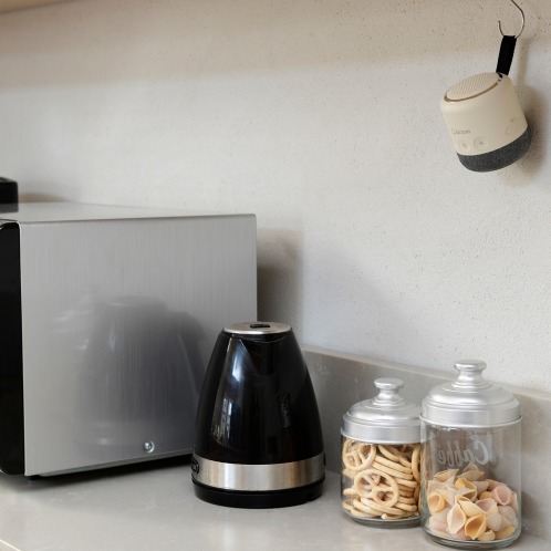 5Wのスピーカーが上部にあり、一方向だけでなく全体に音が広がるため、距離が離れていても聞き取りやすく、キッチンで洗い物をしながら、気になる番組の続きなどがよく聞こえて便利。