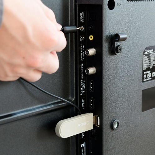 テレビのUSB端子とイヤホン端子に繋げるだけ!シンプルで簡単な接続方法でわかりやすく、面倒な設定不要。