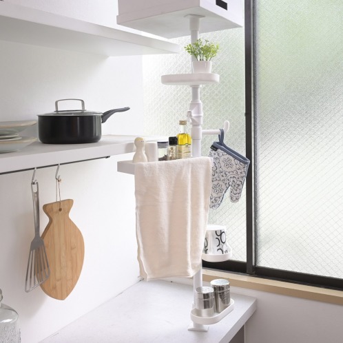 ちょっとした隙間にも 工具不要で 簡単ワンタッチ設置 突っ張りキッチンラック