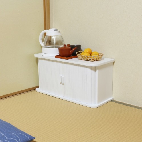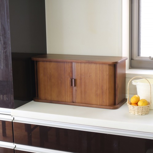 本体に素材特性上湿気に強く、軽量な桐を使用した、竹製のジャバラ扉がおしゃれなカウンター上収納庫をご紹介します。