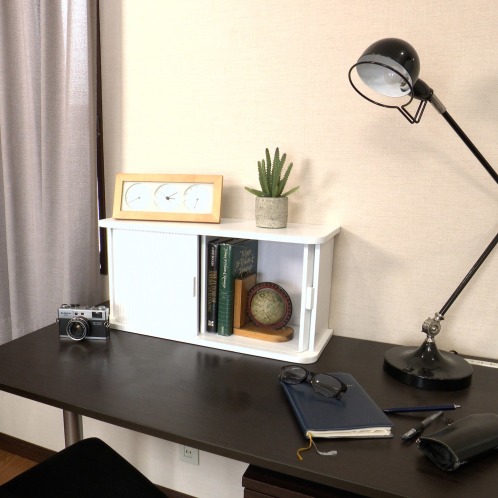 こまごまとしたものを隠しつつ収納ができるため、見た目もすっきり。