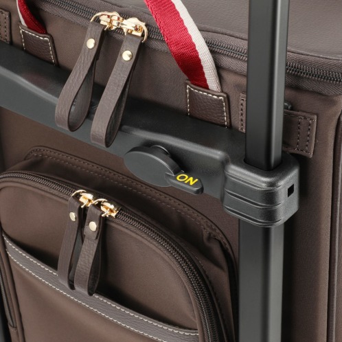 ターンスイッチタイプの4輪ストッパー機能搭載で、キャリーが勝手に転がってしまうのを防ぎます。