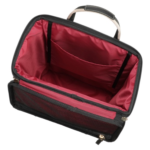 合計6個の多彩なポケットで効率よく収納でき、バニティー型なので上部にお土産などの軽い物も載せやすくなっています。
