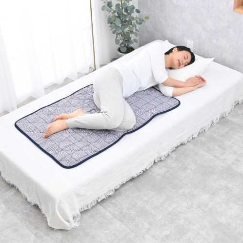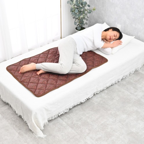 岩盤浴にも使用されている“オーラストーン”をたっぷり練り込んだ“オーラ繊維”を中わたに使用した、使いやすいサイズ感のキルトです。