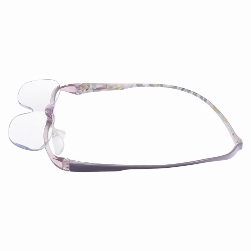 UVカットとブルーライトカット機能付きの一体成型のフレームレスのレンズは、視野が広いため、文字が読みやすく、フレームが視界に入るストレスがなく、快適な使い心地。