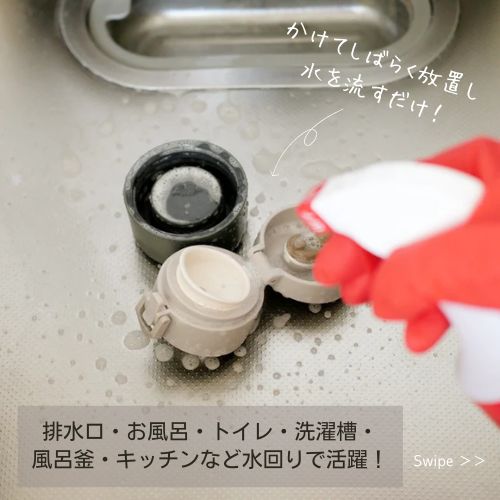 家庭では簡単に落とせなかった水回りのカビやヌメリに、かけてしばらく放置し、その後水を流すだけ。