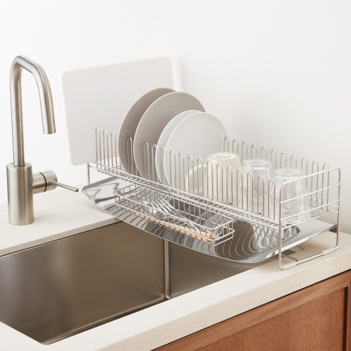 これにより、大皿もきっちりと納まりやすく、垂直に立てられるので水切れが早く、安定感もあります。