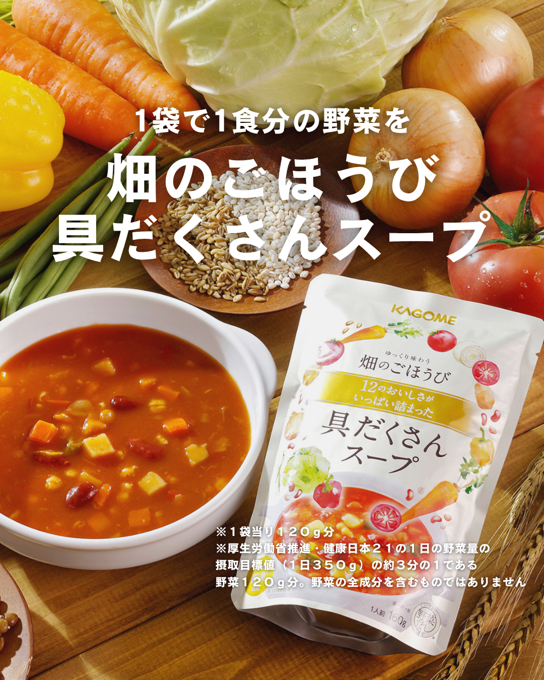 カゴメ ゆっくり味わう 畑のごほうび 12のおいしさが いっぱい詰まった 具だくさんスープ