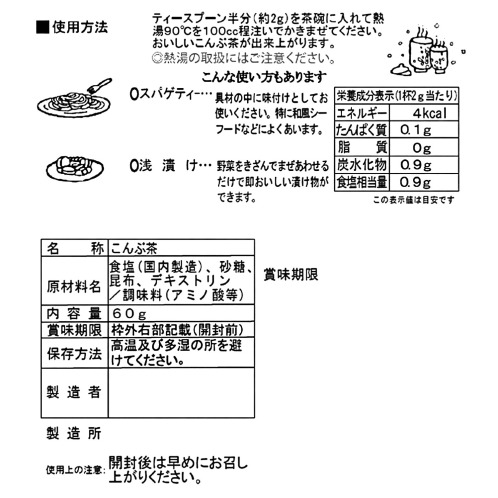そのままお湯に溶かしてこんぶ茶として楽しんでいただくのはもちろん、和・洋・中どの料理にも合うので、お料理のアレンジにも使っていただけます。