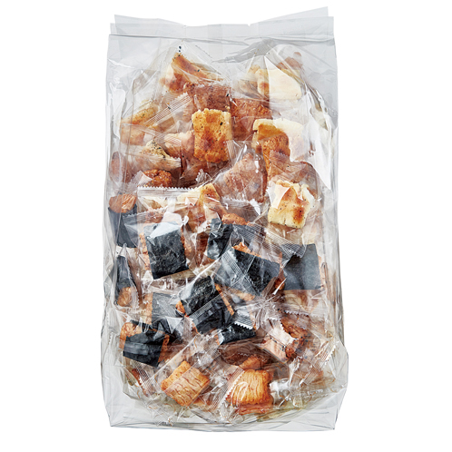 しょっぱいものから、甘いもの、ピリッと辛いものまで、バラエティ豊かな9種類の一口おかきを詰め合わせました。