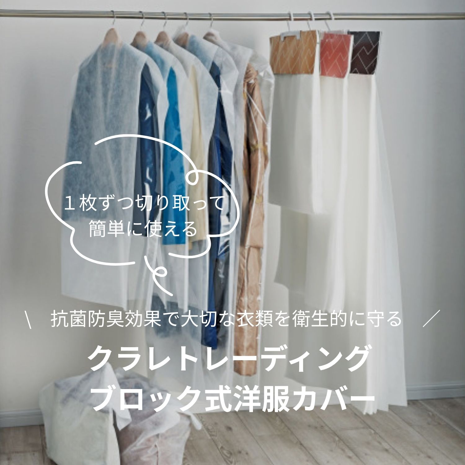 <クラレトレーディング>より、1枚ずつ切り取って簡単に使える洋服カバーのご紹介です。