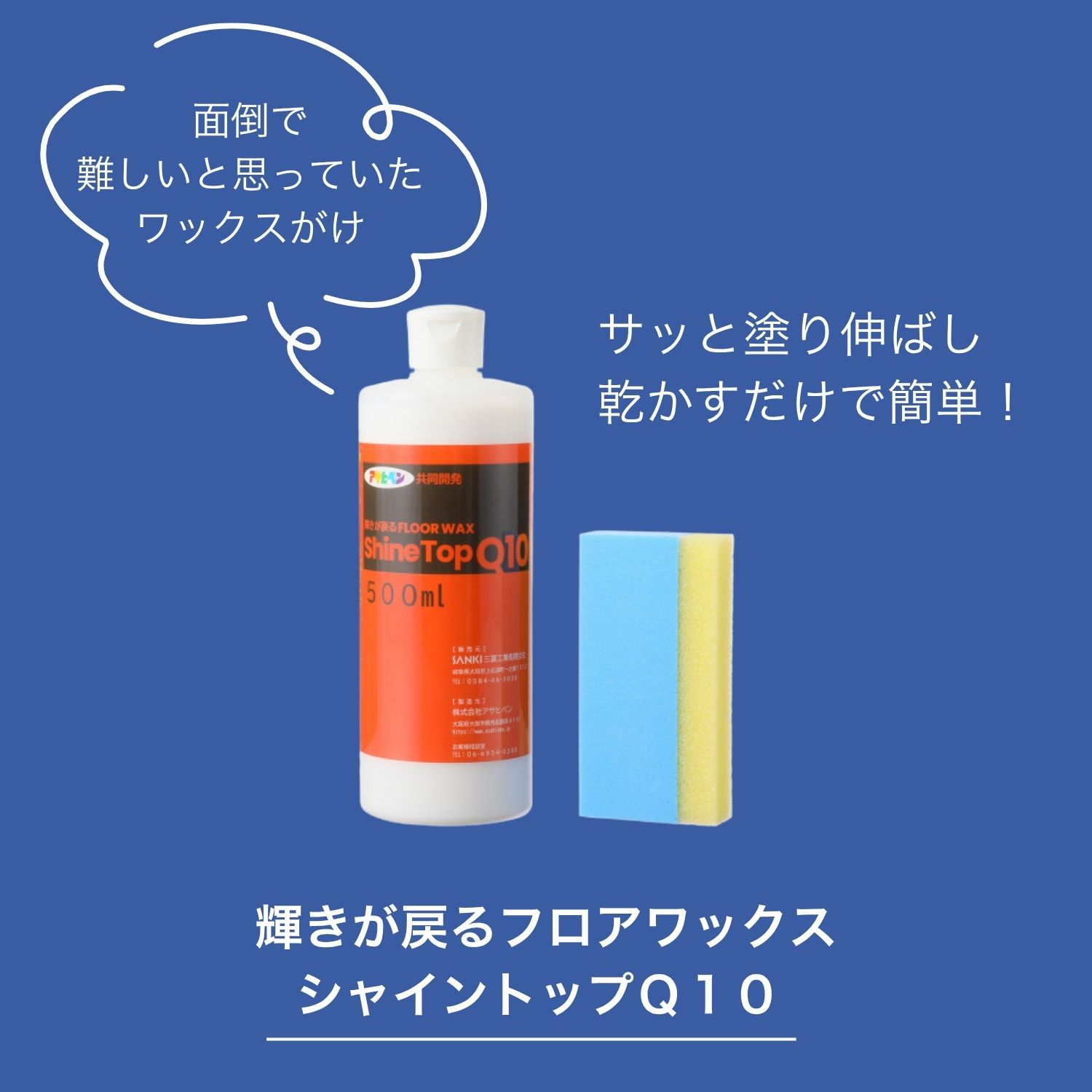 塗布用スポンジ付で サッと塗り伸ばし 乾かすだけ簡単! 輝きが戻るフロアワックス シャイントップQ10 <1リットル>