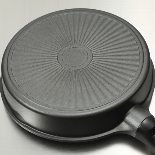 底面は放射線状の凹凸があるため、表面積が増え、よりガス火を捉えて熱の伝わりにくい箇所へも効率よく熱を伝えます。