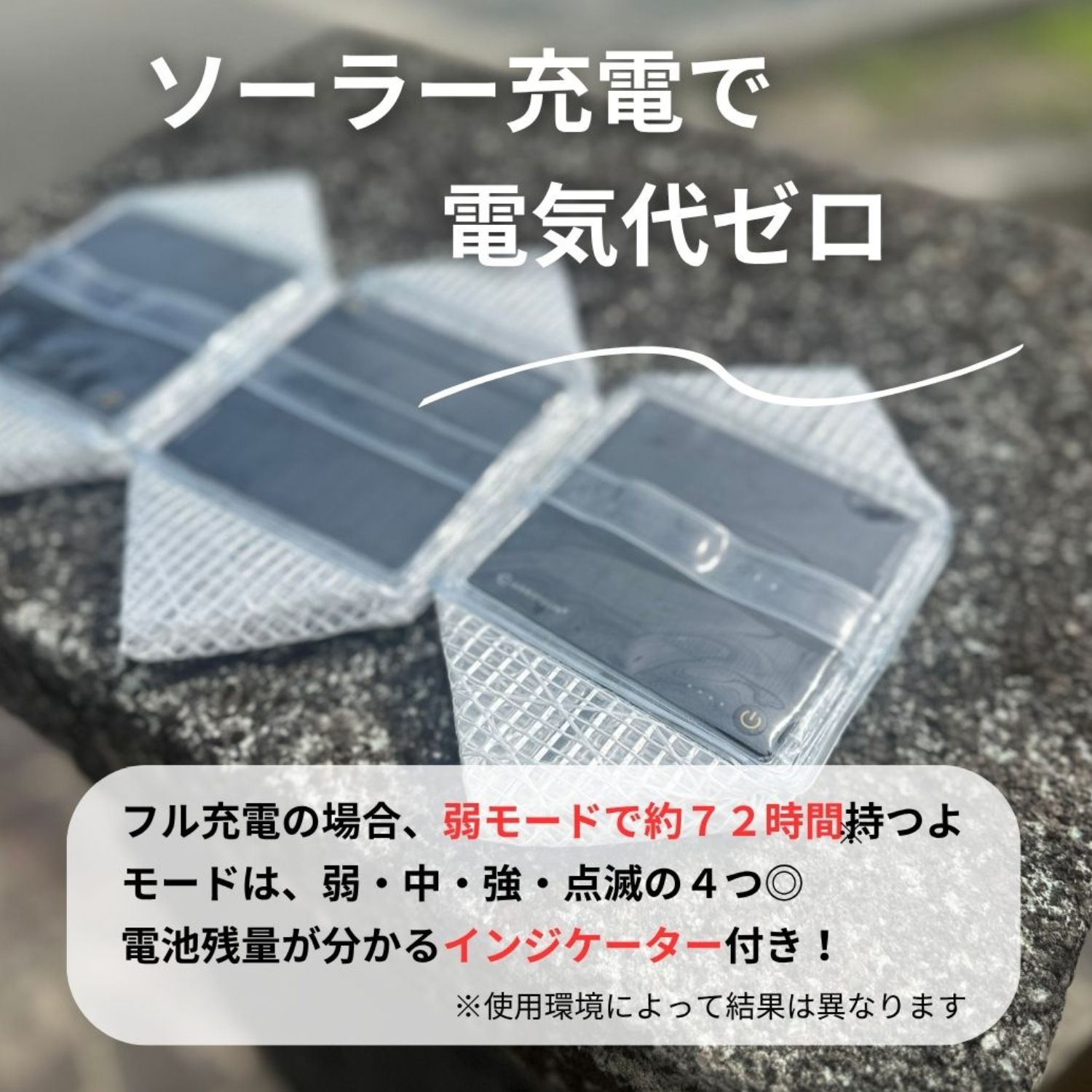 ・日陰や曇りでは充電できない。陽当たりのよい場所でしっかり日光をあてる。