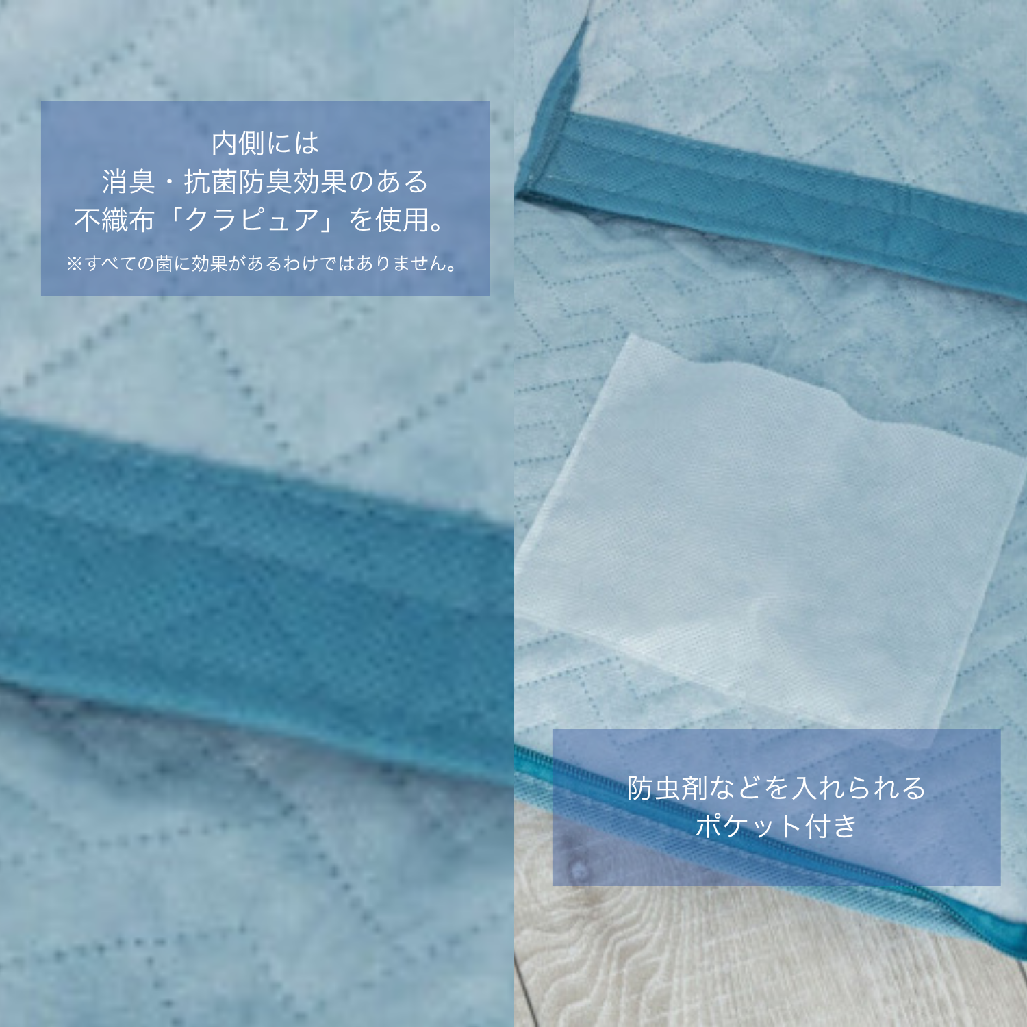 内側には消臭・抗菌防臭効果のある不織布「クラピュア」を使用しています。