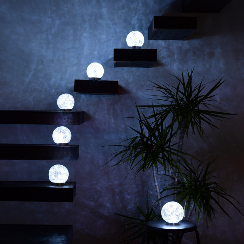 (※直射日光で約8~10時間充電した場合)ガラス×ステンレスのスタイリッシュかつ球体形のかわいいデザインで、暗くなるとお庭にやさしい光を照らします。