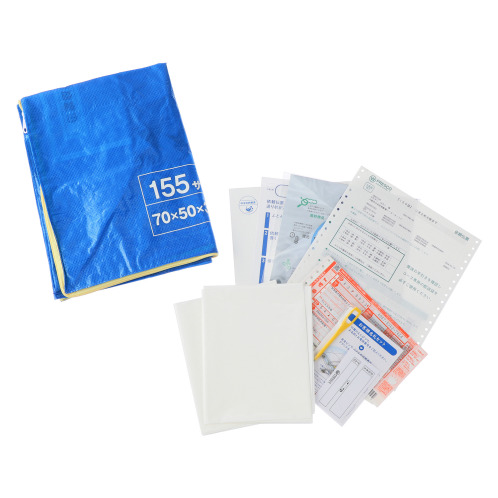 ・専用配送袋 小(155サイズ配送袋)、ふとん丸洗い発送の手引き、宅急便送り状(着払)、依頼伝票(宅急便送り状[発払]添付)、お客様名札セット、梱包補助用ビニール袋×2