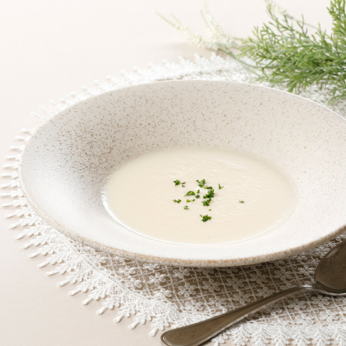 ホワイトアスパラガスのポタージュは、北鎌倉にある系列店“紫(ゆかり)”にて季節限定で提供される大人気メニューです。