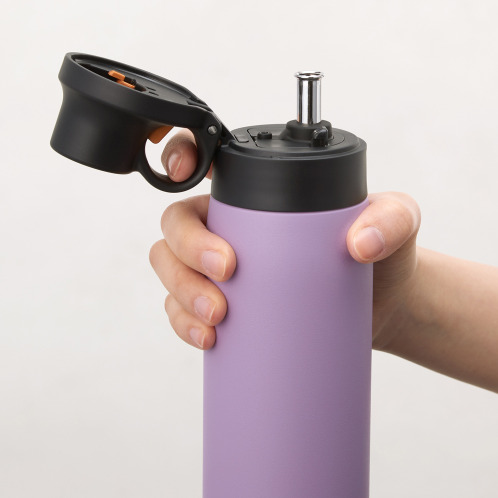 結露しにくく、ふたは片手で開けやすい“ループせん”を採用し、事務仕事をしながら、アウトドアのときなどにもさっと水分補給しやすいのもうれしいポイント!汚れやニオイが残りにくく、取り外して隅々まで洗えるステンレス製ストローを採用した、サステナブルでいつも持ち歩きたくなるアイテムです。