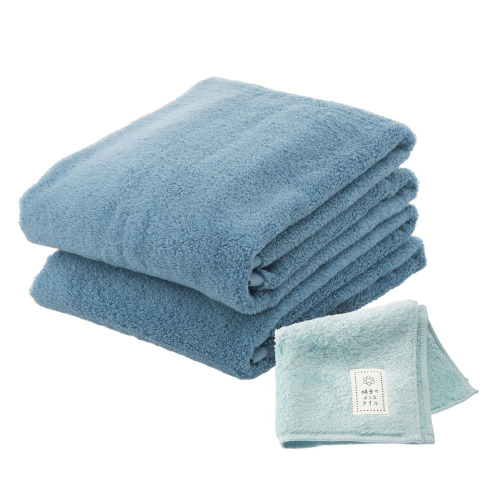 軽くてふわふわ♪ 無撚糸で作った 綿雪のようなタオル ベルベットカラー バスタオル2枚 タオルチーフ特別セット ネイビー