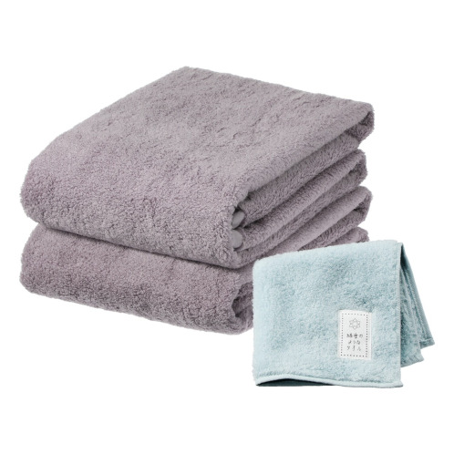 軽くてふわふわ♪ 無撚糸で作った 綿雪のようなタオル ベルベットカラー バスタオル2枚 タオルチーフ特別セット