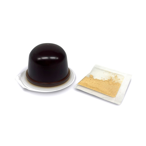 沖縄県産の黒糖を使い、深いコクのある味に仕上げた水わらびもち雫と、北海道産大豆を使用したきなこをセットにしました。