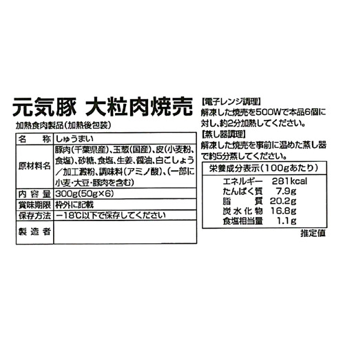 国産ブランド銘柄豚“元気豚”に限定して使用した、大粒で食べ応えのある肉焼売のご紹介です。