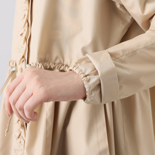 フードはゆとりがあり、ひもで調整ができるため、強い雨風の日でも安心感があります。