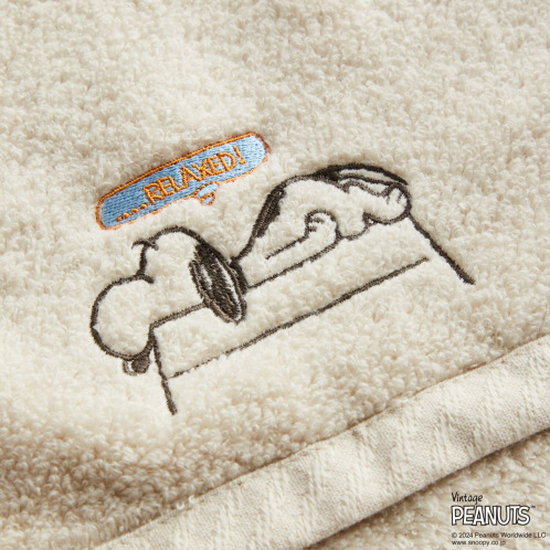 うとうとと眠たげなスヌーピーの刺しゅうデザインが、愛らしい表情を添えてくれます。