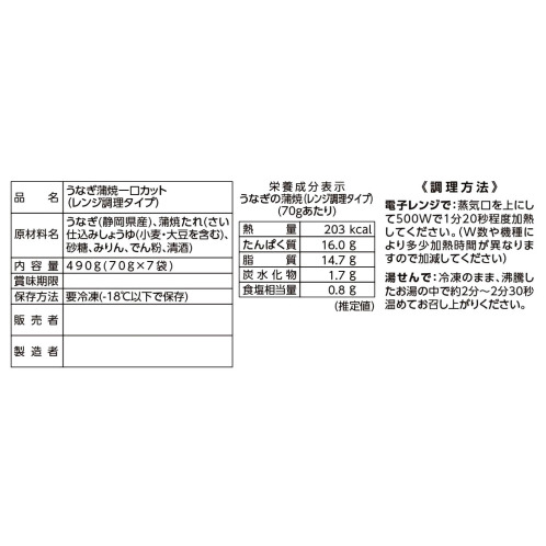 静岡県産限定! ふっくらやわらか うなぎの蒲焼(カット) (レンジ調理タイプ)