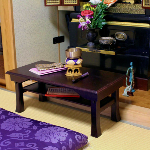 仏壇前の供養台や、仏壇をお持ちでなかったり、置くスペースがない場合など遺影や位牌置きテーブルとして、また写経や、読書、絵画を描いたりなど、趣味作業時のローテーブルとしても重宝しそう。