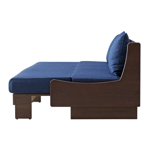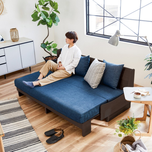 座面をスライドすると、足を延ばして座ったり、そのまま横になってお休みになれる、“座るもよし、眠るもよし”のマルチユースな仕上がりです。