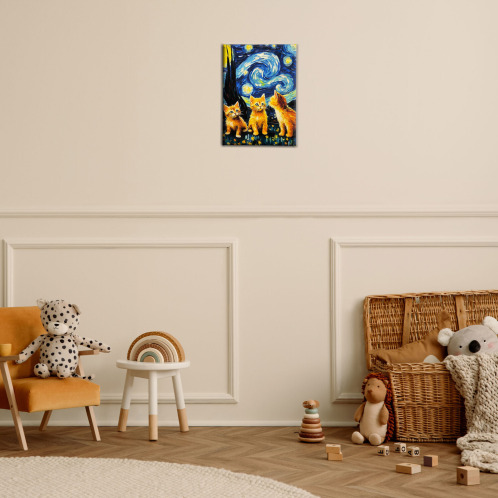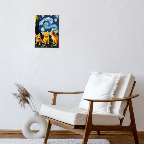 インテリアアート 猫シリーズ “星月夜猫” <約33×24cm>