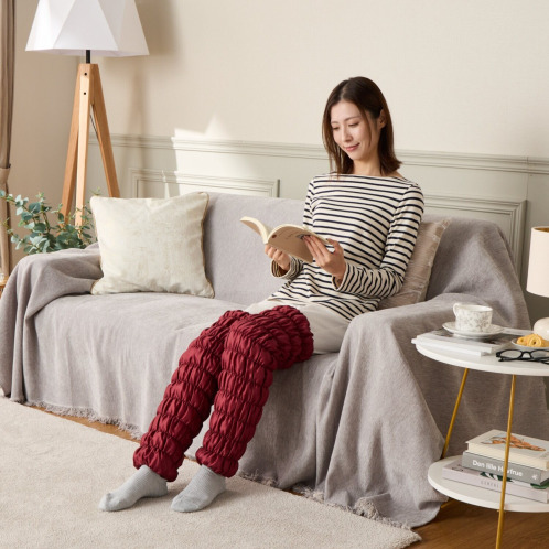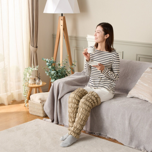 ゆったりとしたサイズ感なので締め付けにくく、就寝時や、冬に自転車に乗る時、オフィス内などさまざまなシーンで活躍しそう。