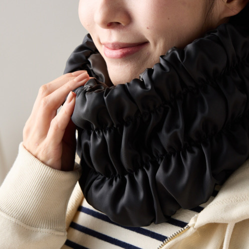 “オーラ繊維”には鉱石の優れた蓄熱効果があり、首周りを覆ってじんわり暖か。