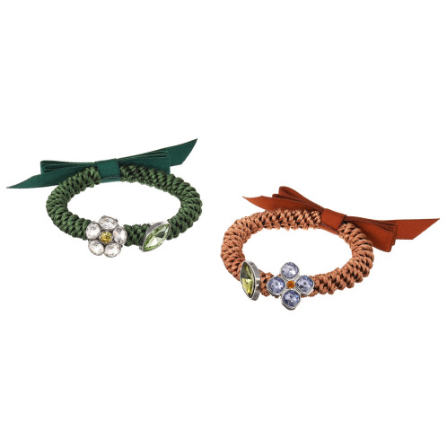 美しいモティーフチャームが付いており、ブレスレットとしてはもちろん、ヘアゴムとしても使える便利なアイテム。