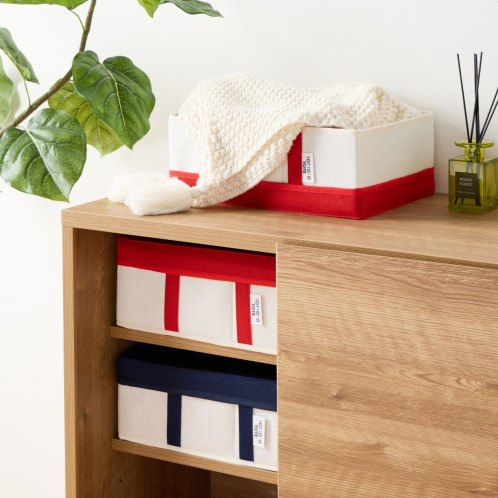 おしゃれなデザインで 便利に収納 トートデザイン収納ケース <ボックスタイプ2個組> レッド