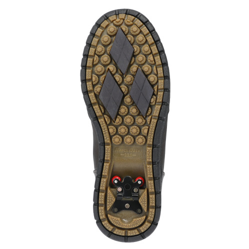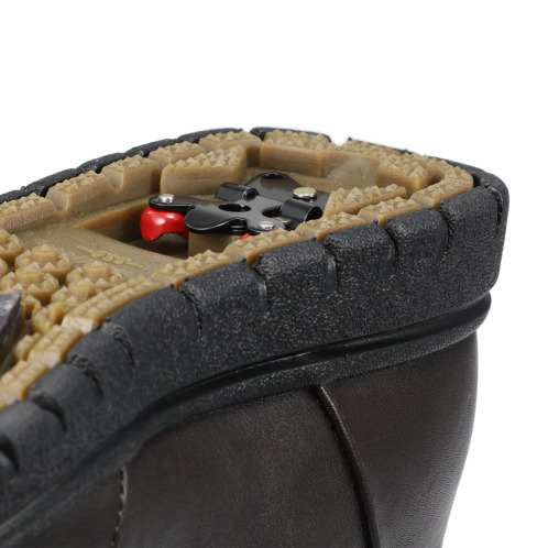 靴裏前面にはガラス繊維入りラバーを使用し、靴底には鋼のダブルグリップスパイクを採用。