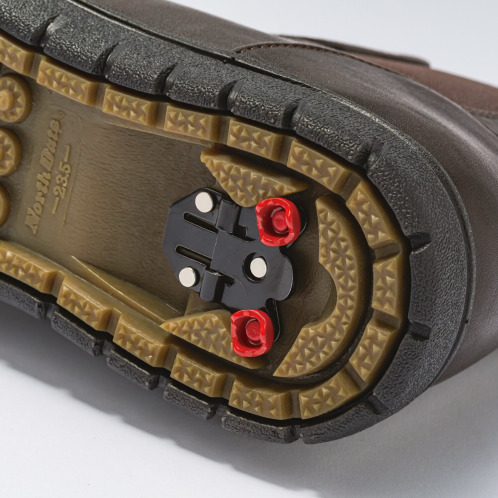 ダブルグリップスパイクをおこすことで、スパイクが氷をかみ、氷の上でも滑りにくく、歩きやすくなります。