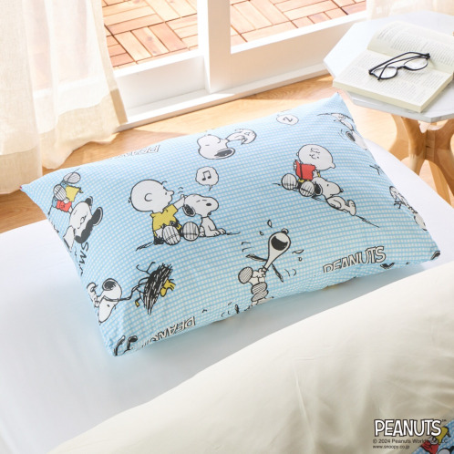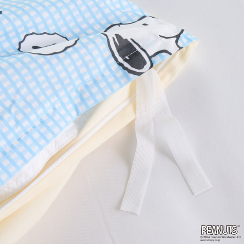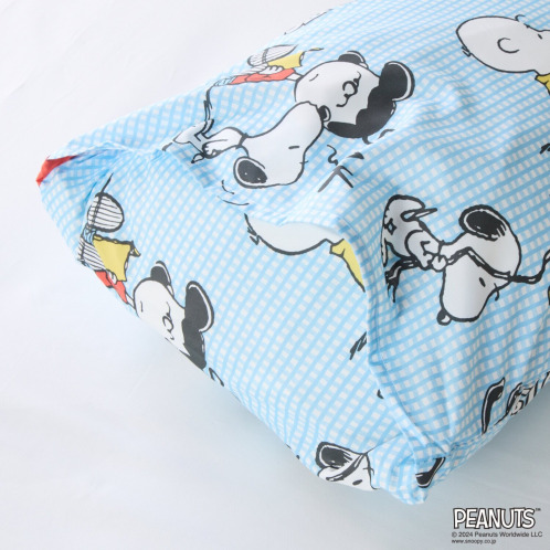ピーナッツに登場する個性豊かで魅力的な仲間たちのデザインが楽し気な雰囲気の、掛けふとんカバーとピローケースです。