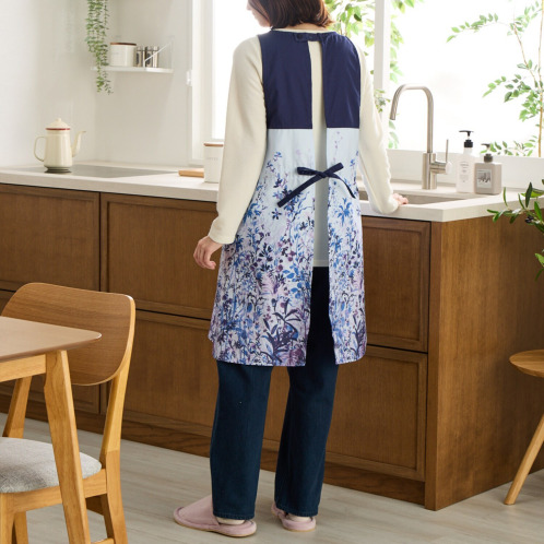 いきいきとした水彩画のような花々が描かれた、モダンなフラワープリントが目を惹くエプロンです。