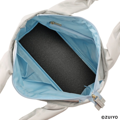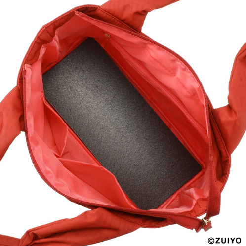 開口部はファスナー式で中身が見えないつくりで、マチもしっかりと取っているため見た目より収納力があります。